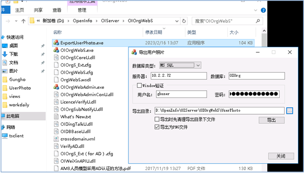 把軟件:ExportUserPhoto.exe 放在 Org 服務下