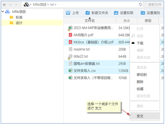 - 選擇一個(gè)或多個(gè)文件,右鍵,進(jìn)行發(fā)文