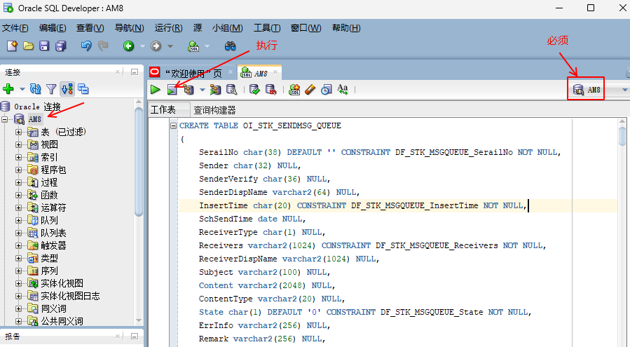 AM8數(shù)據(jù)庫創(chuàng)建成功后,按上述的方式 分別創(chuàng)建:OIOrg、OIFile、OIMobox