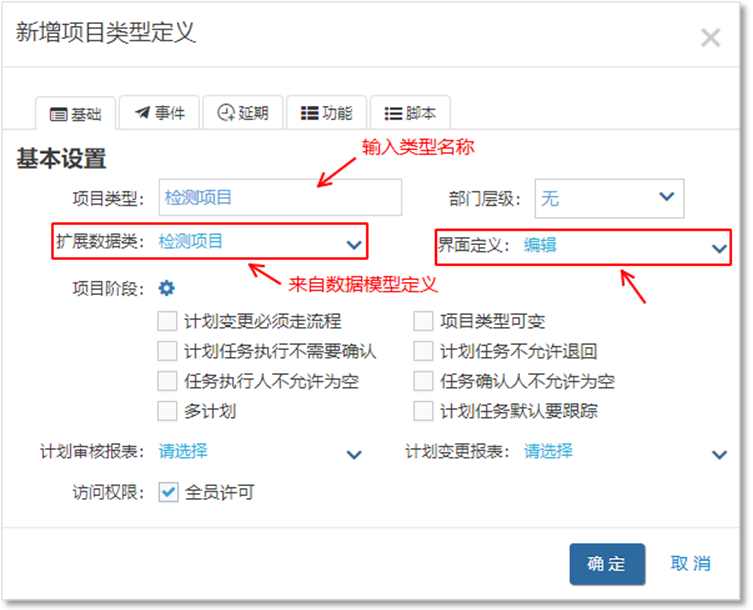 企業(yè)在實(shí)施項(xiàng)目管理系統(tǒng)的時(shí)候,不通類型的項(xiàng)目其屬性可能是不一樣的。而Gungho標(biāo)準(zhǔn)系統(tǒng)內(nèi)對項(xiàng)目的屬性,主要包括(項(xiàng)目名稱、編號、開始結(jié)束日期等)。為了適應(yīng)企業(yè)個性項(xiàng)目信息的輸入,我們需要通過Mobox平臺定義項(xiàng)目類型去適應(yīng)這個需求