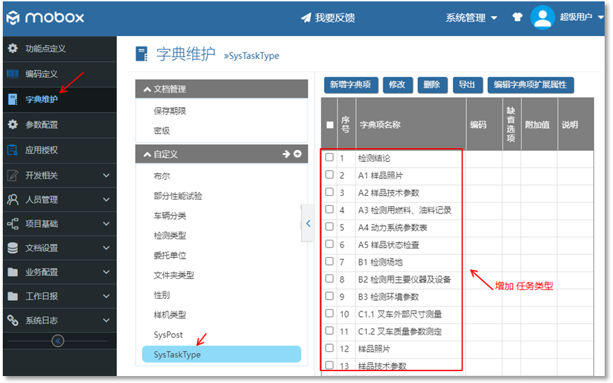 自定義里面是將任務(wù)與Mobox的功能點(diǎn)集合在一起