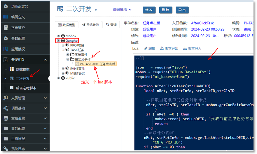 開發(fā)一個腳本:任務(wù)點(diǎn)擊后 腳本 (目的是 任務(wù)點(diǎn)擊后能將 prj_id,task_id 等設(shè)置到全局變量)