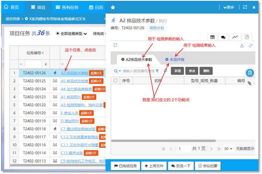 某檢測檢驗(yàn)中心,在做叉車整車檢測的時(shí)候會分解出100多個的檢測任務(wù),每一個任務(wù)除了要求員工按時(shí)間要求完成以外,還需將每個檢測任務(wù)所獲取的數(shù)據(jù)等級下來。這個數(shù)據(jù)可能是一個表,而且每一個任務(wù)所對應(yīng)的填寫數(shù)據(jù)也都是不一樣的。
