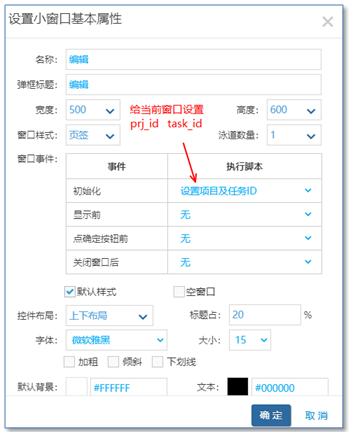 定義小窗口的時(shí)候需要注意,有一個窗口初始化腳本要執(zhí)行(目的是個小窗口內(nèi)設(shè)置prj_id, task_id)