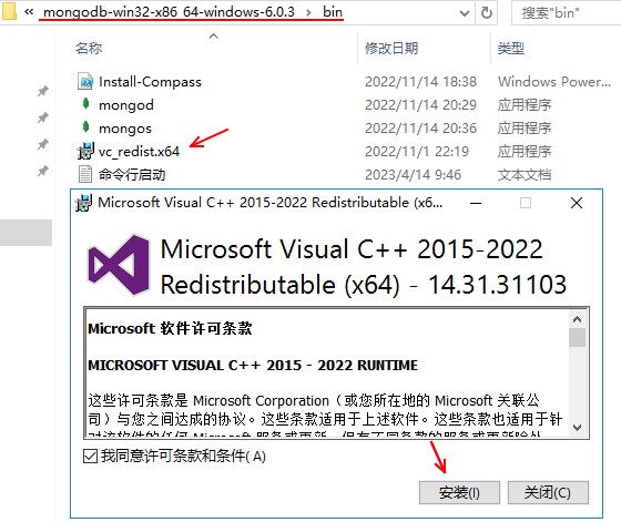 解決方法,運行vc發行環境就可以(在mongod目錄下面有 vc環境安裝盤,以管理員身份運行)
